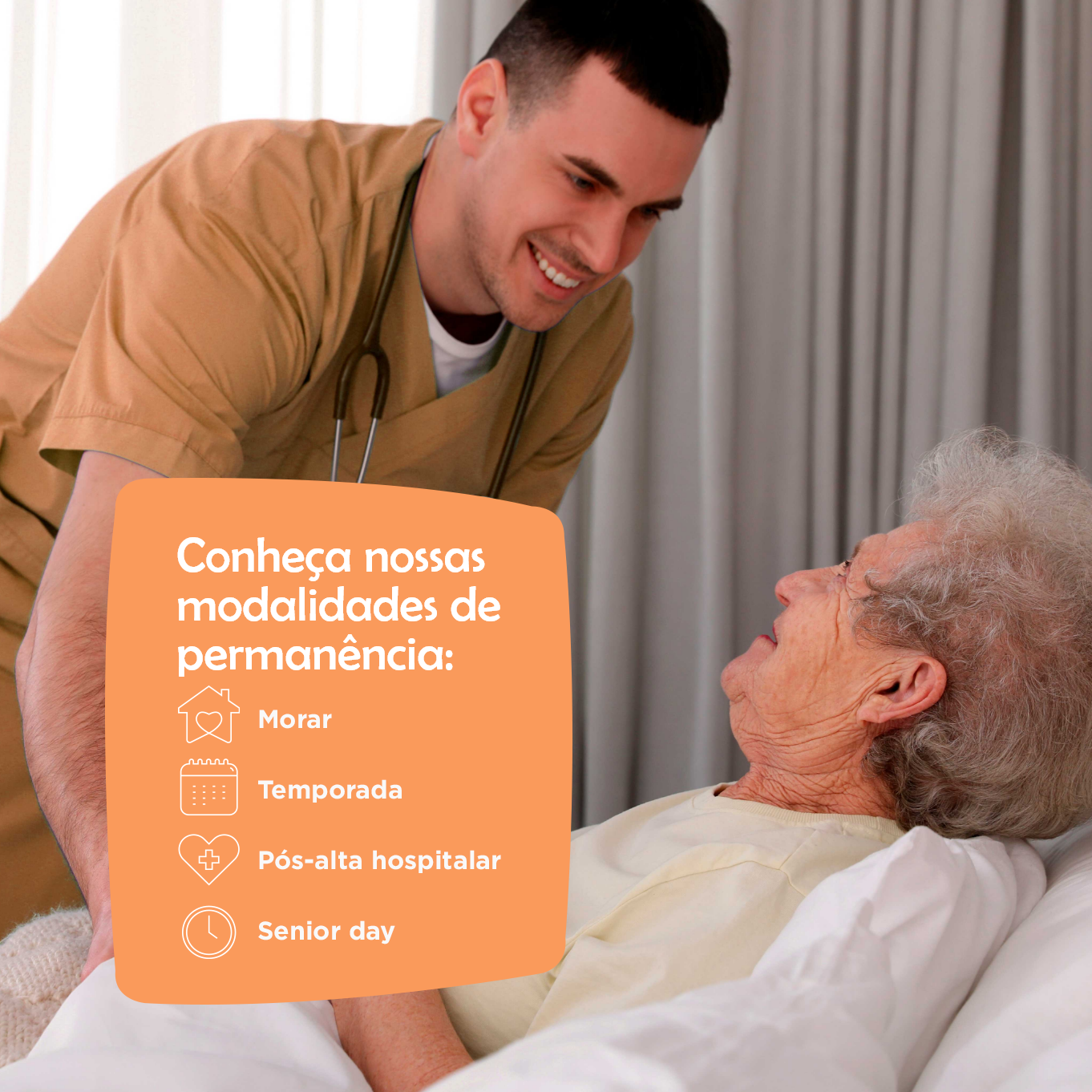 • Cuidados Assistênciais 24h e Equipe Multidisciplinar: Profissionais qualificados com atenção às necessidades especiais, como apoio a idosos com mobilidade reduzida, acamados entre outros.